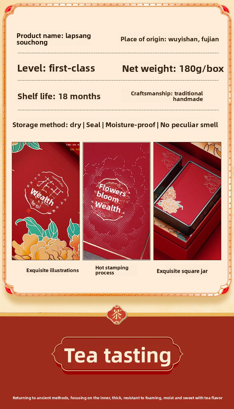 Floral Fragrance Lapsang Souchong Black Tea Strong Aroma Tea Leaves - 250g Gift Box | Traditional smoking craft, pine wood aroma and floral sweetness